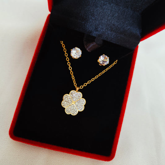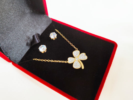 Coffret trèfle strass Acier Inoxydable